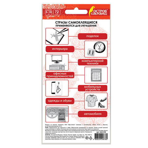 С помощью самоклеящихся страз ОСТРОВ СОКРОВИЩ можно декорировать поделки и аппликации, детали интерьера, одежду и гаджеты, реализовать самые смелые творческие идеи.