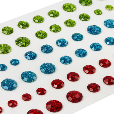 Стразы самоклеящиеся КРУГЛЫЕ, 5-10 мм, 72 штуки, блестящие, на подложке, ОСТРОВ СОКРОВИЩ, 662238