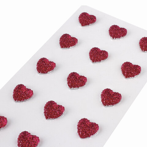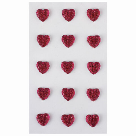 Стразы самоклеящиеся "СЕРДЦА", 12 мм, 15 штук, малиновые, на подложке, ОСТРОВ СОКРОВИЩ, 662234