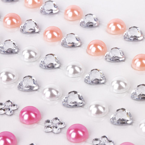 Стразы самоклеящиеся "Жемчуг", ассорти, 6 мм, 152 шт., на подложке, ОСТРОВ СОКРОВИЩ, 661574