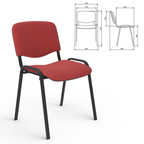 Стул для персонала и посетителей "ИЗО", черный каркас, ткань черно-красная, В-9/С-16