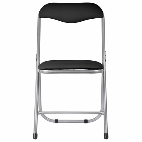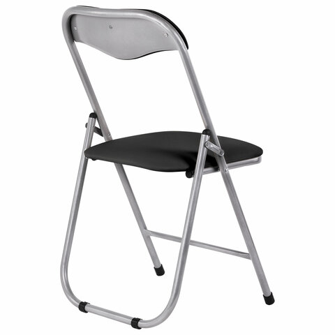 Стул складной для дома и офиса РС04, серебристый каркас, кожзам черный