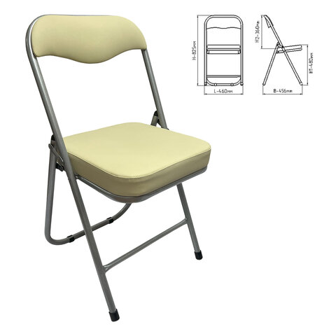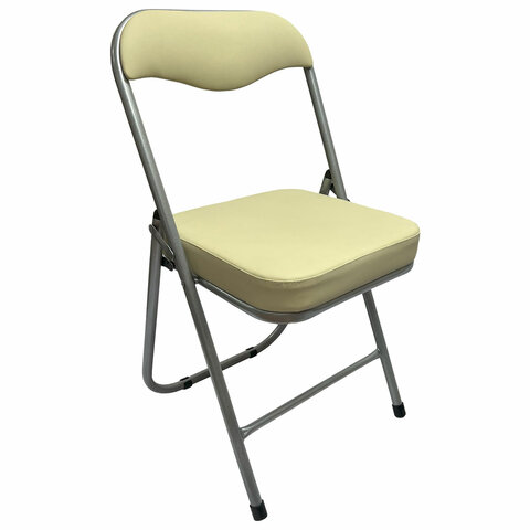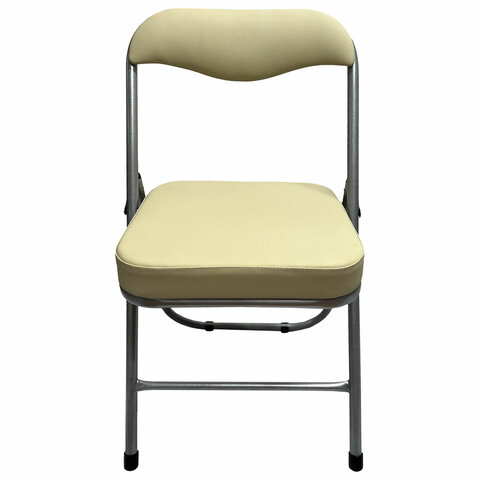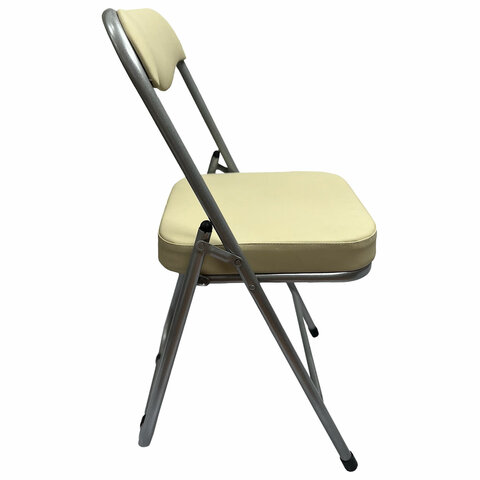 Стул складной для дома и офиса РС04К комфорт, серебристый каркас, кожзам бежевый