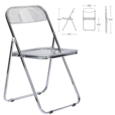 Стул складной прозрачный BRABIX "Style CF-015", хромированный каркас, пластик, 533250