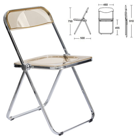 Стул складной прозрачный янтарный BRABIX "Glam CF-020", хромированный каркас, пластик, 533246