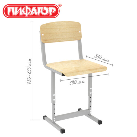 Стул ученический регулируемый ПИФАГОР SC-3, 380х380х750-830 мм, рост 5-7 / 4-6 (160-190 см), серый каркас, фанера, 533350