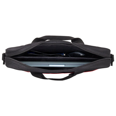 Сумка портфель BRAUBERG PRACTICAL с отделением для ноутбука 15,6", "Red line", черная, 29х40х7 см, 270829