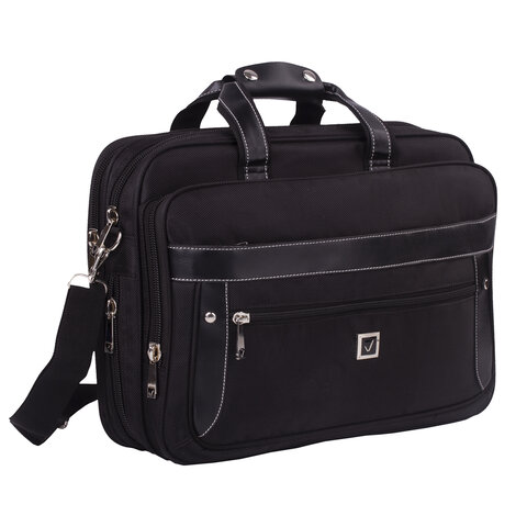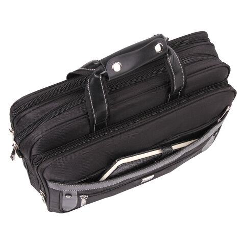 Сумка портфель BRAUBERG CARBON с отделением для ноутбука 15-16", 2 отделения, черная, 31х41х13 см, 240509