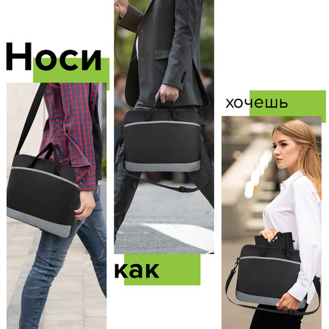 Сумка для документов STAFF MANAGER на молнии с карманом, полиэстер, черно-серый, 32х37х5 см, 270836