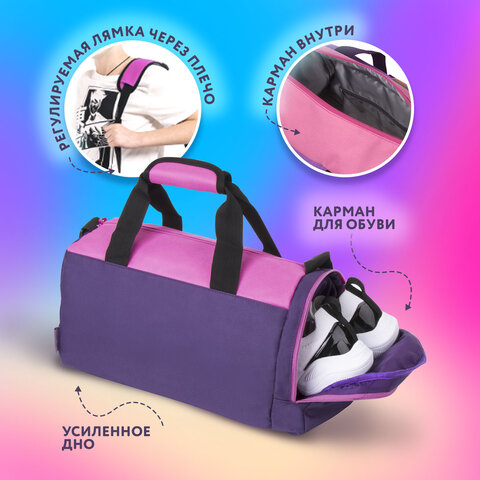 Сумка для занятий спортивная ЮНЛАНДИЯ с отделением для обуви, 40х22х20 см, фиолетовый/розовый, 270094
