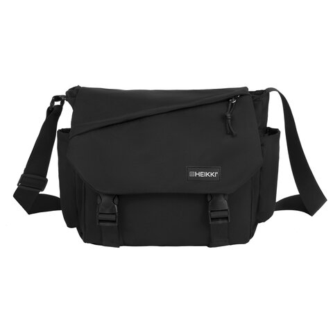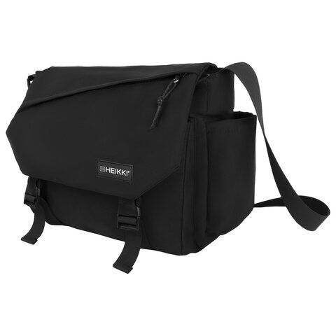 Сумка на плечо большая HEIKKI STREAM (ХЕЙКИ) два отделения, боковые карманы, А4, черная, 26х32х11 см, 272641