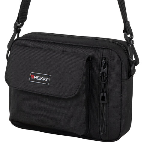 Сумка на плечо HEIKKI ATOM (ХЕЙКИ) два кармана, черная, 17х22х6 см, 272633