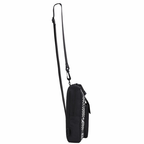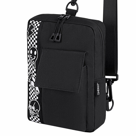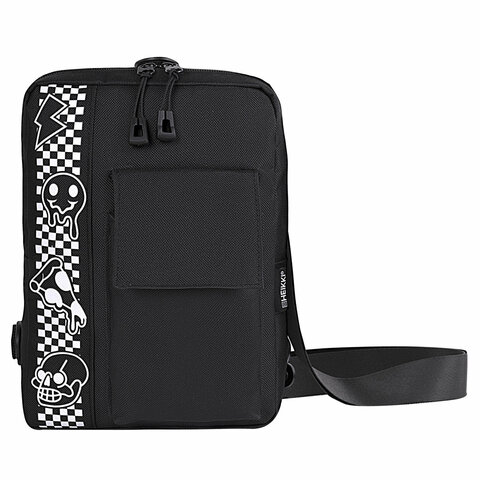 Сумка на плечо HEIKKI TORRENT (ХЕЙКИ) с карманом, "Chess emoji", черная, 25х18х3 см, 272638
