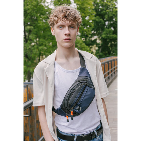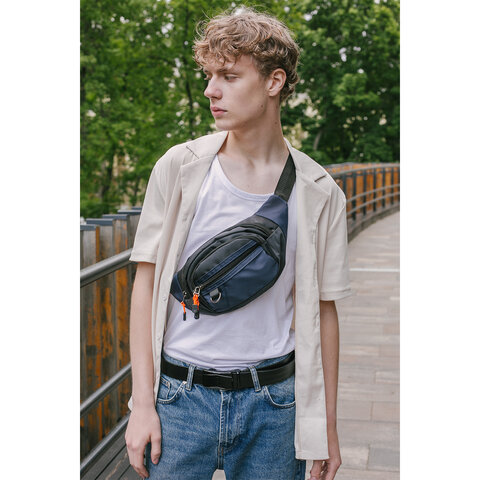 Сумка на пояс HEIKKI PROMPT (ХЕЙКИ), 2 отделения, регулируемый ремень, карман-антивор, синяя, 37х14х5 см, 273927