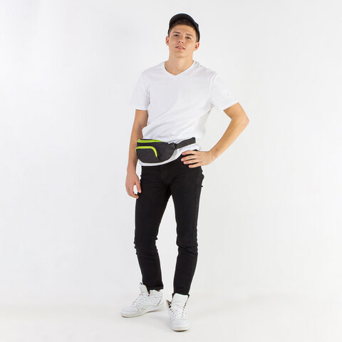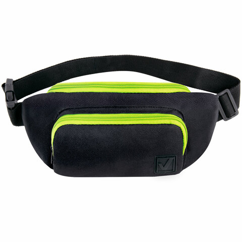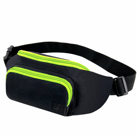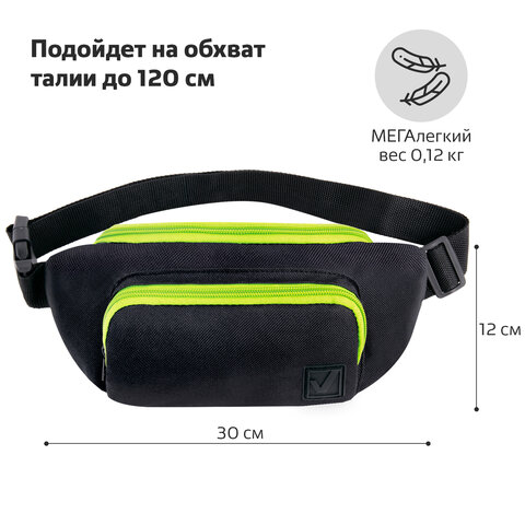 Сумка на пояс BRAUBERG RIO, карман, регулируемый ремень, черная, салатовые детали, 30х12x10 см, 270823