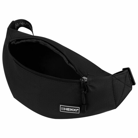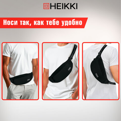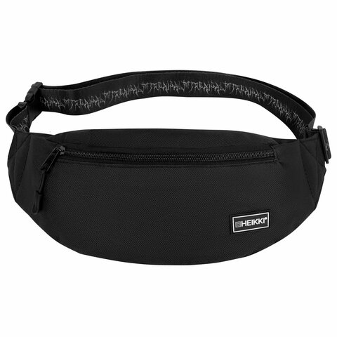 Сумка на пояс HEIKKI RIO (ХЕЙКИ), два отделения, регулируемый ремень, черная с белым, 38х12х8 см, 272617