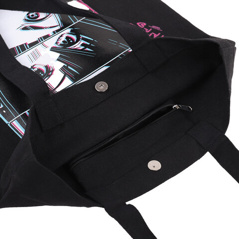 Сумка шоппер BRAUBERG PREMIUM, канвас, 40х35 см, на кнопке, карман, черный, "Anime face", 271903