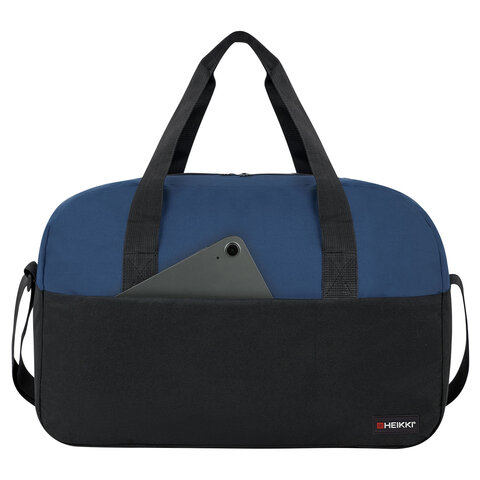 Сумка спортивная HEIKKI BASE (ХЕЙКИ), карман на молнии, черная/темно-синяя, 30x44x17 см, 272622