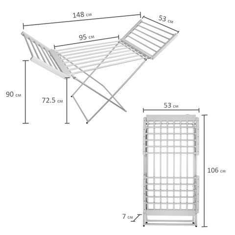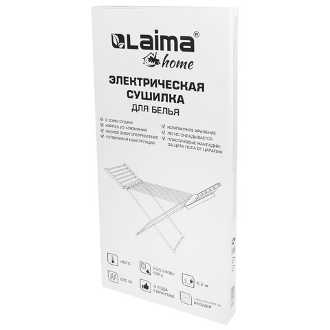 Сушилка для белья напольная, электрическая, раскладная, алюминиевая, три зоны сушки, нагрев 60 °С, LAIMA HOME, 700978