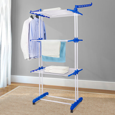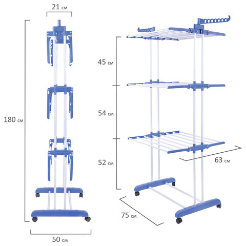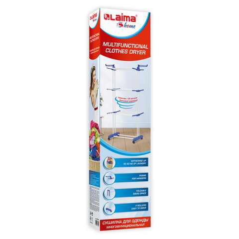 Сушилка напольная для белья раскладная МНОГОФУНКЦИОНАЛЬНАЯ, 3 уровня, на колесах, LAIMA HOME, 607807