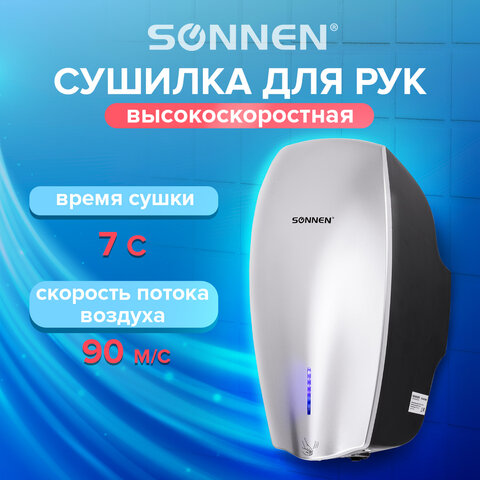 Сушилка ВЫСОКОСКОРОСТНАЯ для рук SONNEN HD-M789G, энергоэффективная, 607221
