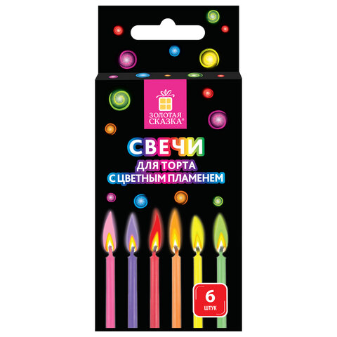 Набор свечей для торта с цветным пламенем 6 шт., 6 см, с держателями, ЗОЛОТАЯ СКАЗКА, 591459