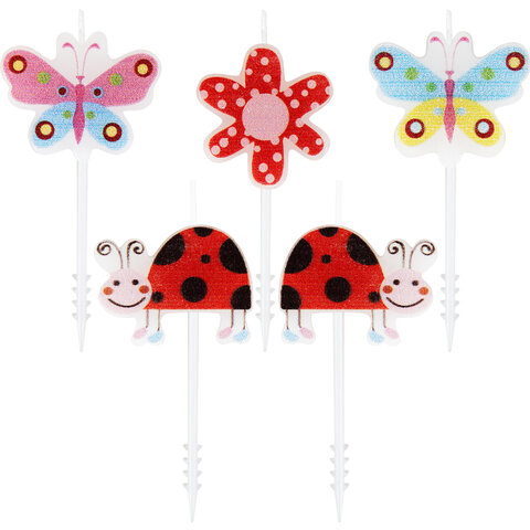 Свечи фигурные для торта на шпажках "Бабочки, божьи коровки", 5 шт, 2,5х3 см, ЗОЛОТАЯ СКАЗКА, 591463