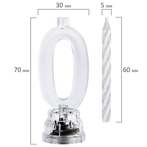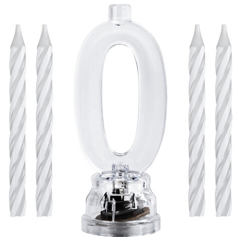 Цифра-подсвечник "0" светодиодная, ЗОЛОТАЯ СКАЗКА, в наборе 4 свечи 6 см, 1 батарейка, 591423