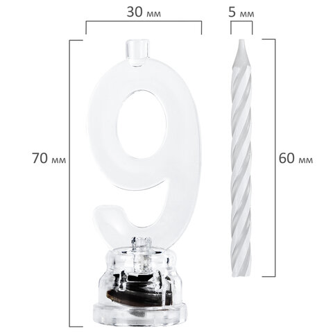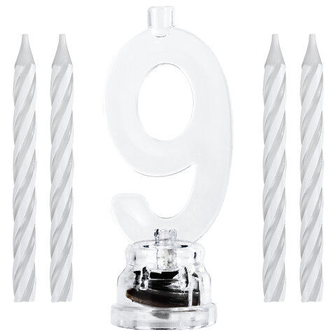 Цифра-подсвечник "9" светодиодная, ЗОЛОТАЯ СКАЗКА, в наборе 4 свечи 6 см, 1 батарейка, 591432