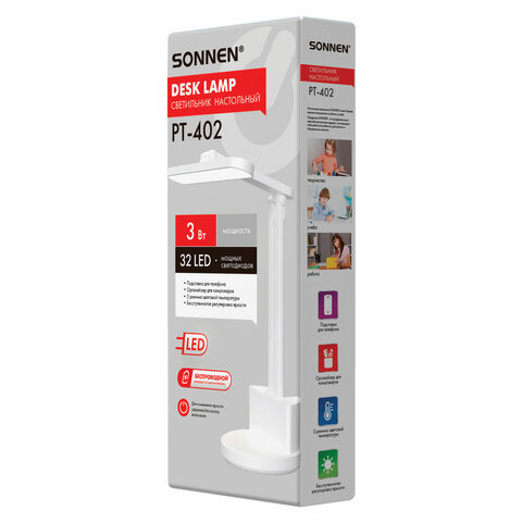Настольная лампа / светильник беспроводная SONNEN PT-402, органайзер, USB, LED, 3 Вт, 3 режима, 238782