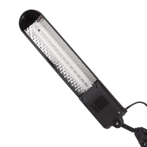 Настольный светильник на струбцине для люминесцентных ламп мощностью 11 Вт, что аналогично яркости 60 Вт лампы накаливания. Отсутствует акустический шум и мерцание. Рекомендован для работы за компьютером.