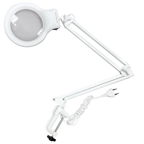 Светодиодный светильник для работы с мелкими деталями: для рукоделия, творчества, ювелирных и часовых мастерских, с увеличительной линзой. Мощность 8 Вт, диаметр линзы 127 мм, светодиодная подсветка по периметру линзы.