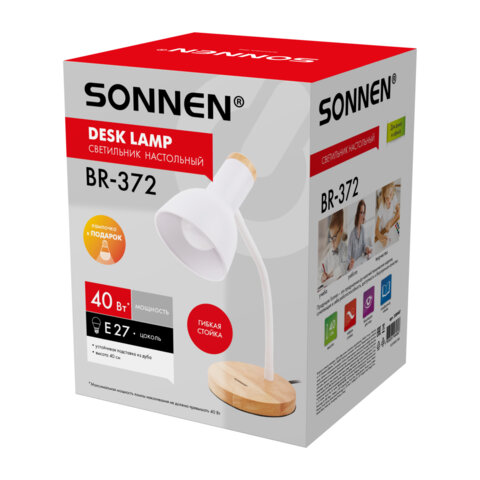Настольная лампа-светильник SONNEN BR-372, на подставке, лампочка в ПОДАРОК!, E27, белый, 40 см, 238447