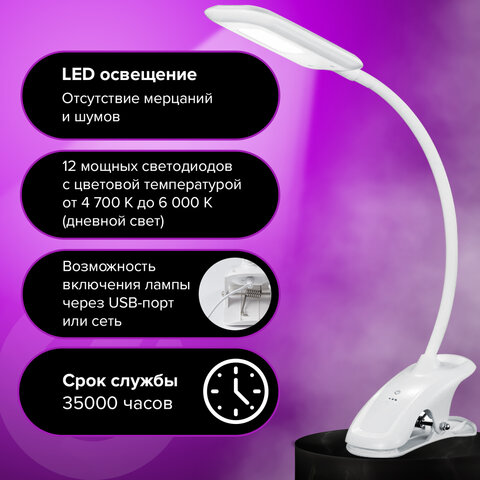 Настольная лампа / светильник SONNEN BR-819C, на прищепке, светодиодная, 8 Вт, белый, 236667