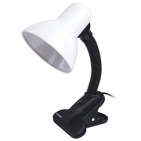 Настольная лампа / светильник SONNEN OU-108, на прищепке, цоколь Е27, белый, 236678