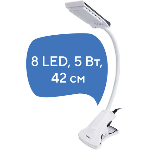 Настольная лампа / светильник SONNEN OU-138, на прищепке, светодиодная, 5 Вт, белый, 236668
