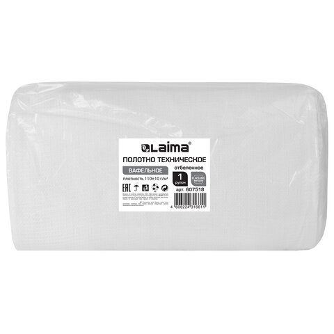 Полотно ВАФЕЛЬНОЕ отбеленное, рулон 0,45х60 м, плотность 110 (±10) г/м2, LAIMA, 607518, ГС