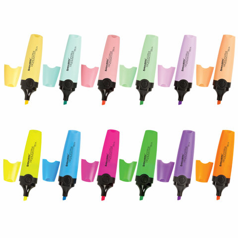 Набор текстовыделителей 12 ЦВЕТОВ на подставке, BRAUBERG "DELTA", линия 1-5 мм, 151737
