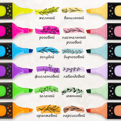 Набор текстовыделителей 12 ЦВЕТОВ на подставке, BRAUBERG "EXTRA", прорезиненный корпус, линия 1-5 мм, 151758
