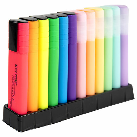 Набор текстовыделителей 12 ЦВЕТОВ на подставке, BRAUBERG "ORIGINAL NEON", линия письма 1-5 мм, 152217