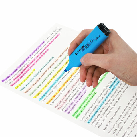 Набор текстовыделителей BRAUBERG "ORIGINAL NEON" предназначен для выделения текста на бумаге любого типа, включая факс-бумагу.