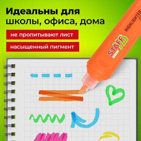 Текстовыделители STAFF "EVERYDAY HL-720" предназначены для выделения текста на бумаге любого типа. Идеально подходят для учебных, домашних и офисных задач.