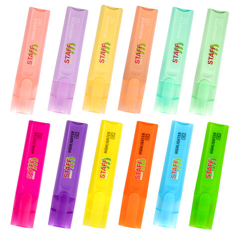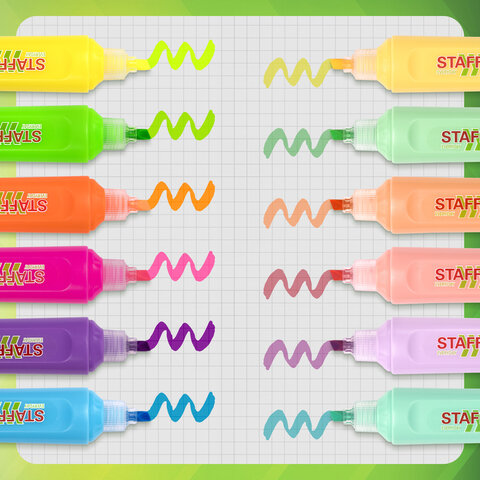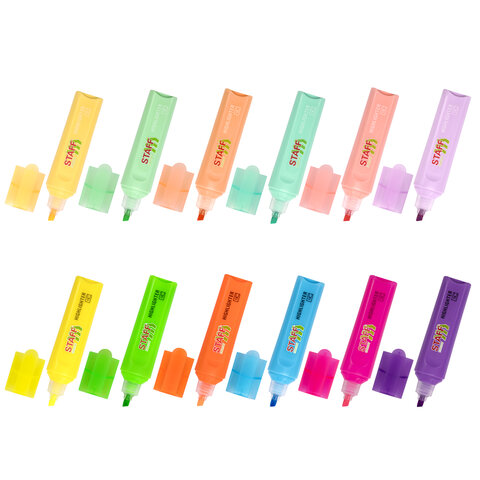 Набор текстовыделителей 12 ЦВЕТОВ, STAFF "EVERYDAY HL-720", 6 неоновых цветов + 6 пастельных цветов, линия 1-5 мм, 152557