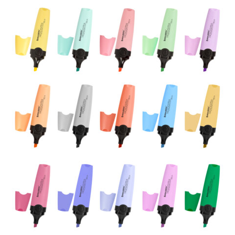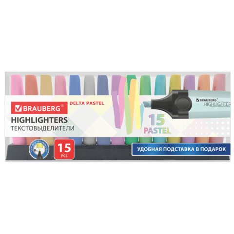 Набор текстовыделителей 15 ПАСТЕЛЬНЫХ ЦВЕТОВ на подставке, BRAUBERG "DELTA PASTEL", линия 1-5 мм, 152507