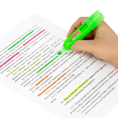 Текстовыделители STAFF "EVERYDAY HL-707" предназначены для выделения текста на бумаге любого типа. Идеально подходят для учебных, домашних и офисных задач.