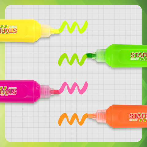Текстовыделители STAFF "EVERYDAY HL-720" предназначены для выделения текста на бумаге любого типа. Идеально подходят для учебных, домашних и офисных задач.