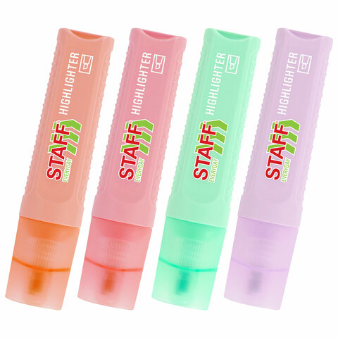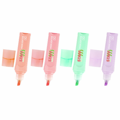 Набор текстовыделителей 4 ПАСТЕЛЬНЫХ ЦВЕТА, STAFF "EVERYDAY HL-707", линия 1-5 мм, скошенный наконечник, 152549