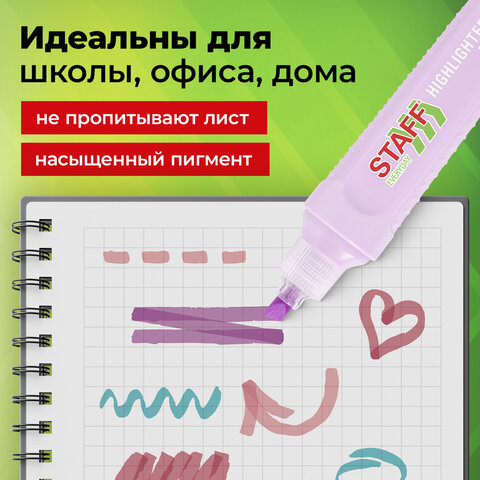 Текстовыделители STAFF "EVERYDAY HL-707" предназначены для выделения текста на бумаге любого типа. Идеально подходят для учебных, домашних и офисных задач.