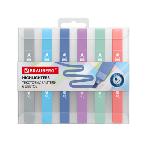 Набор текстовыделителей 6 ПАСТЕЛЬНЫХ ЦВЕТОВ, BRAUBERG "Macaroon", линия 1-5 мм, 152515