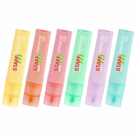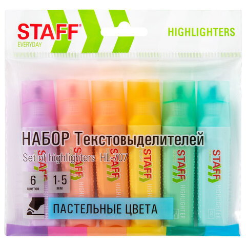 Набор текстовыделителей 6 ПАСТЕЛЬНЫХ ЦВЕТОВ, STAFF "EVERYDAY HL-707", линия 1-5 мм, скошенный наконечник, 152551